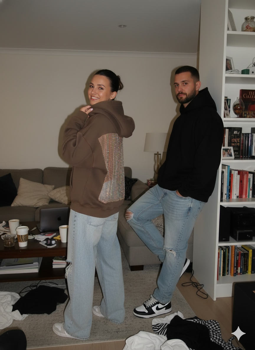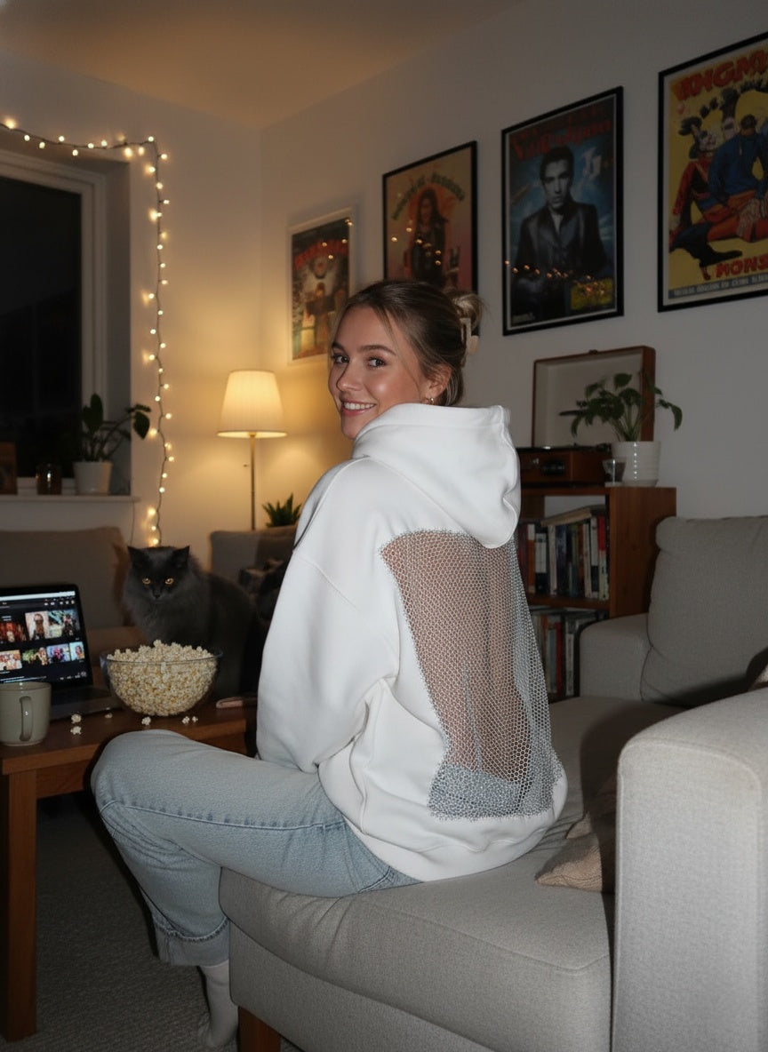 "This hoodie is actually insane 😭 the back is so sparkly in real life and the fit still feels cozy like i could wear it all day"